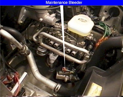 6. Place the Bleeder T Wrench over the maintenance bleed screw and turn slowly until the brake fluid stops flowing.